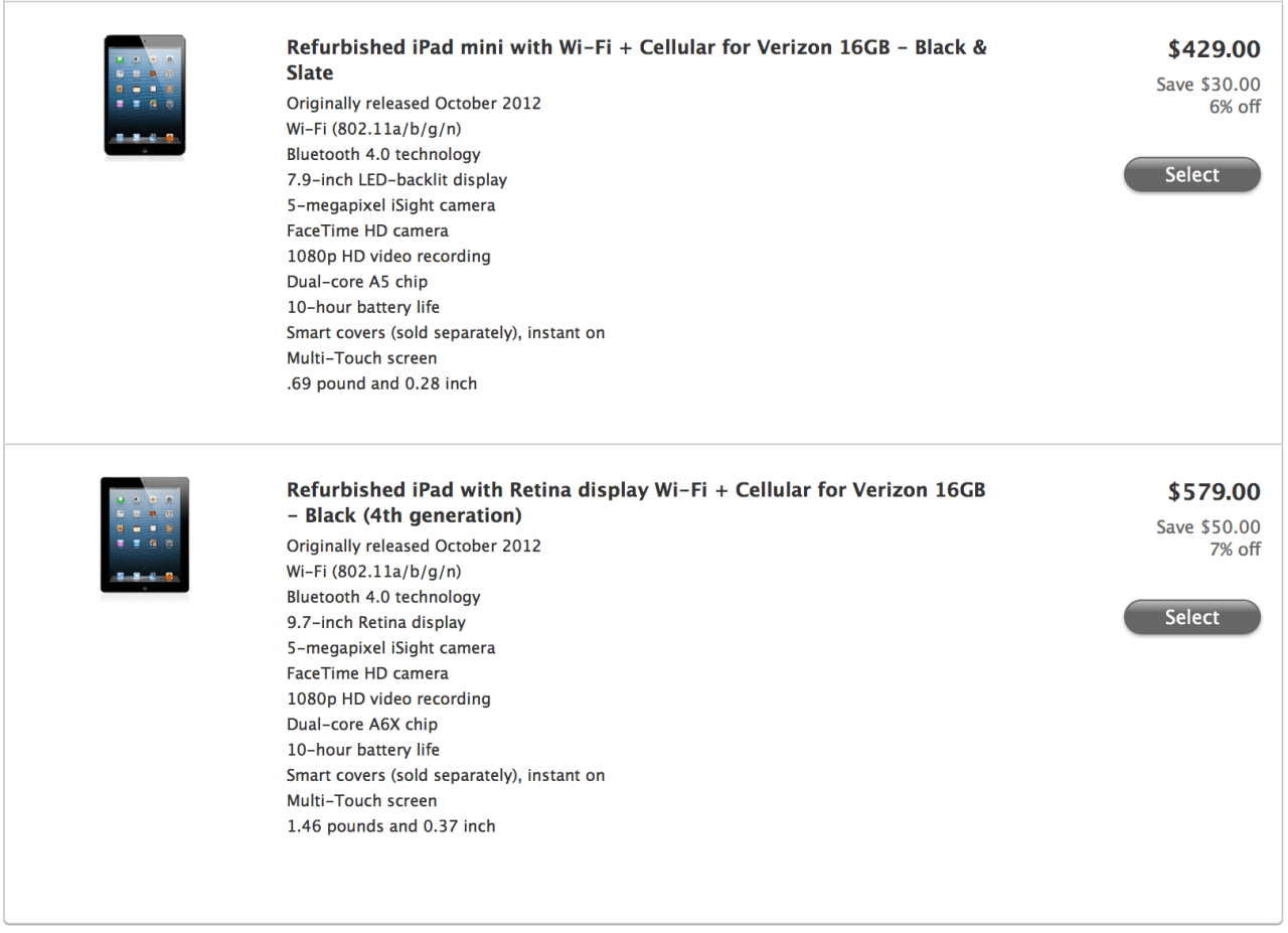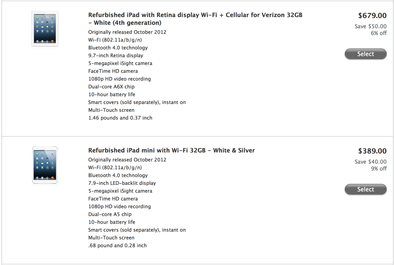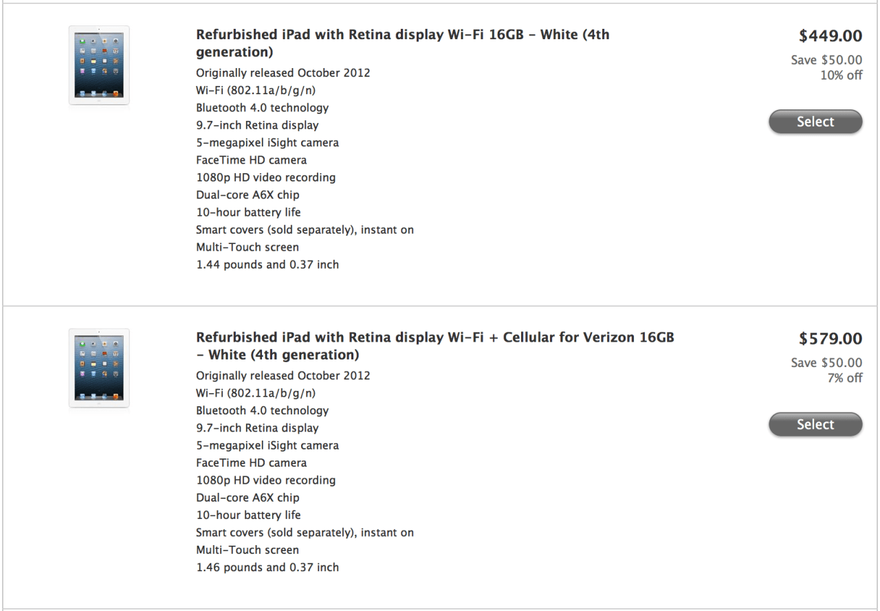 Apple has begun selling refurbished models of the iPad 4 and iPad mini on its online store.