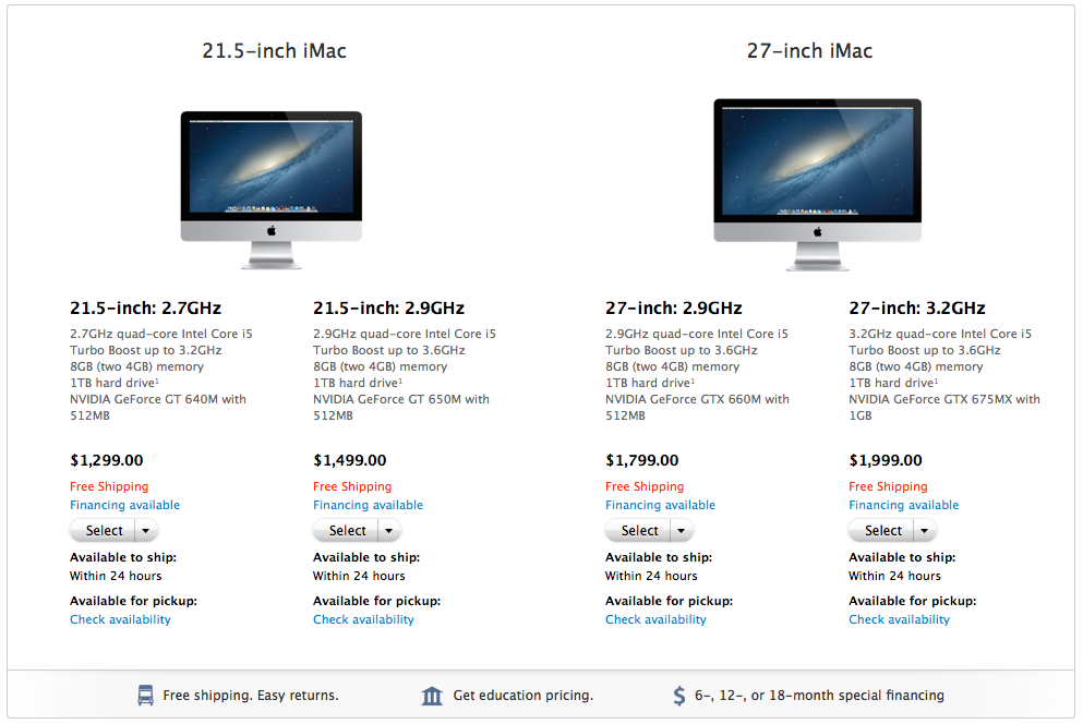 Just three days ago, ship times improved to 1-3 days from the previous 2-3 weeks and 3-4 weeks for the 21.5-inch and 27-inch models, respectively.