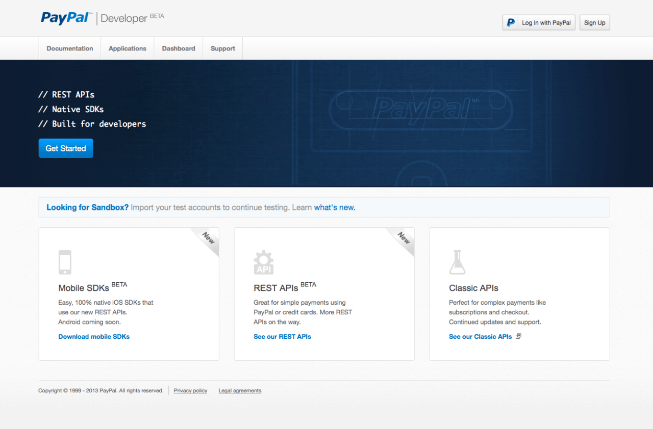 ● Developer Website – We are launching a simple, integrated website – https://developer.paypal.com – that gives developers a single location for our sandbox, tools, documentation, and resources they need to build innovative applications.